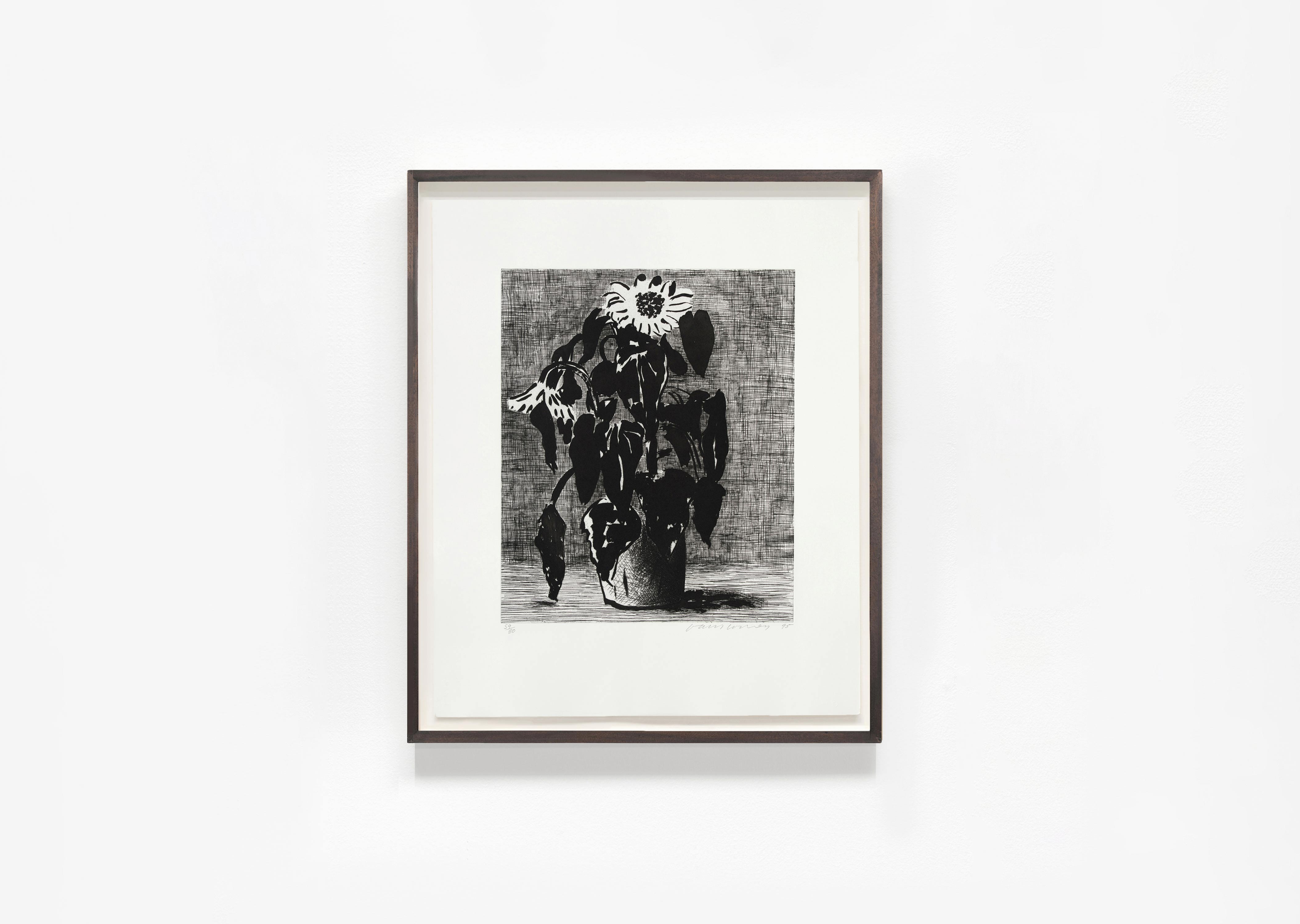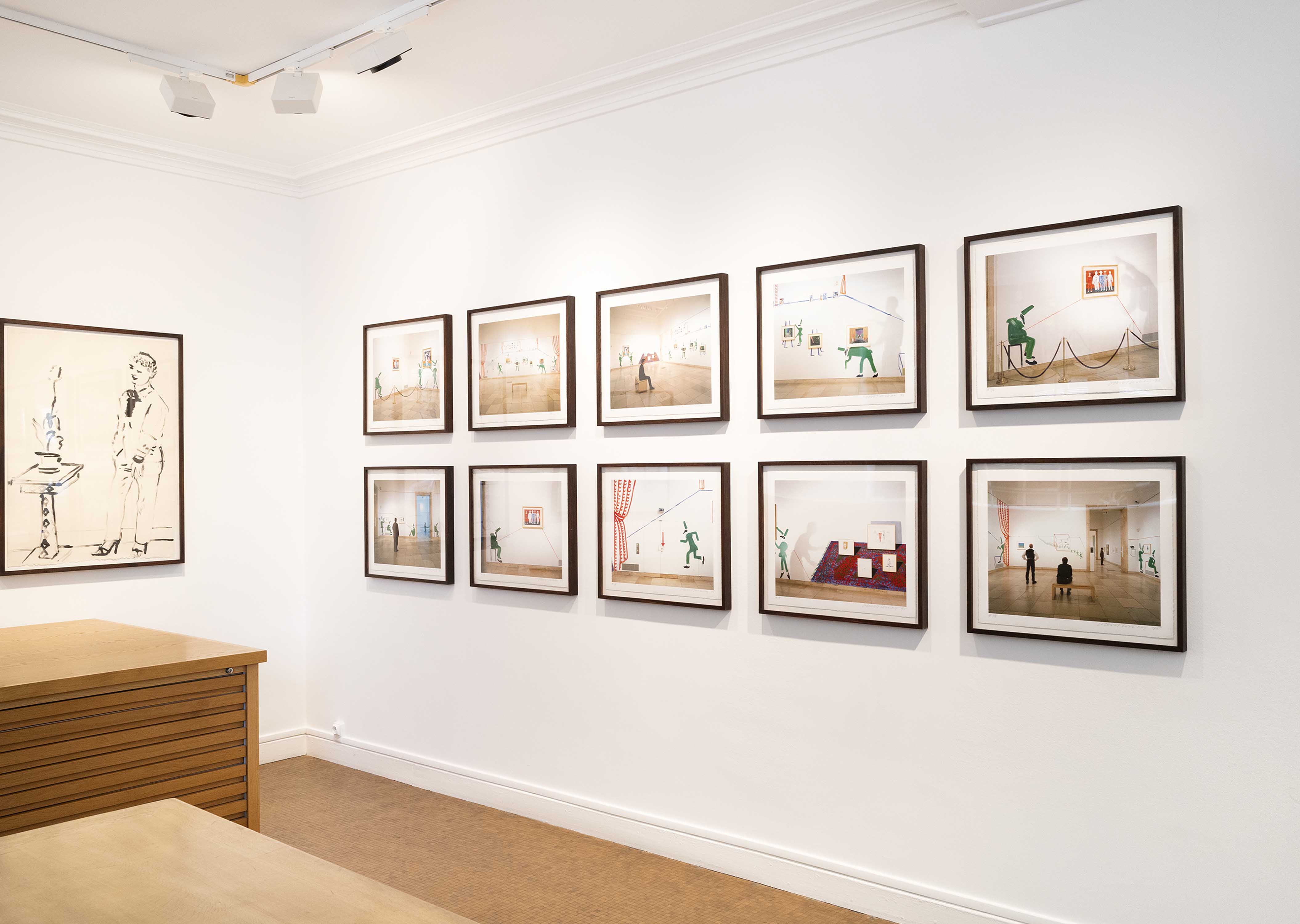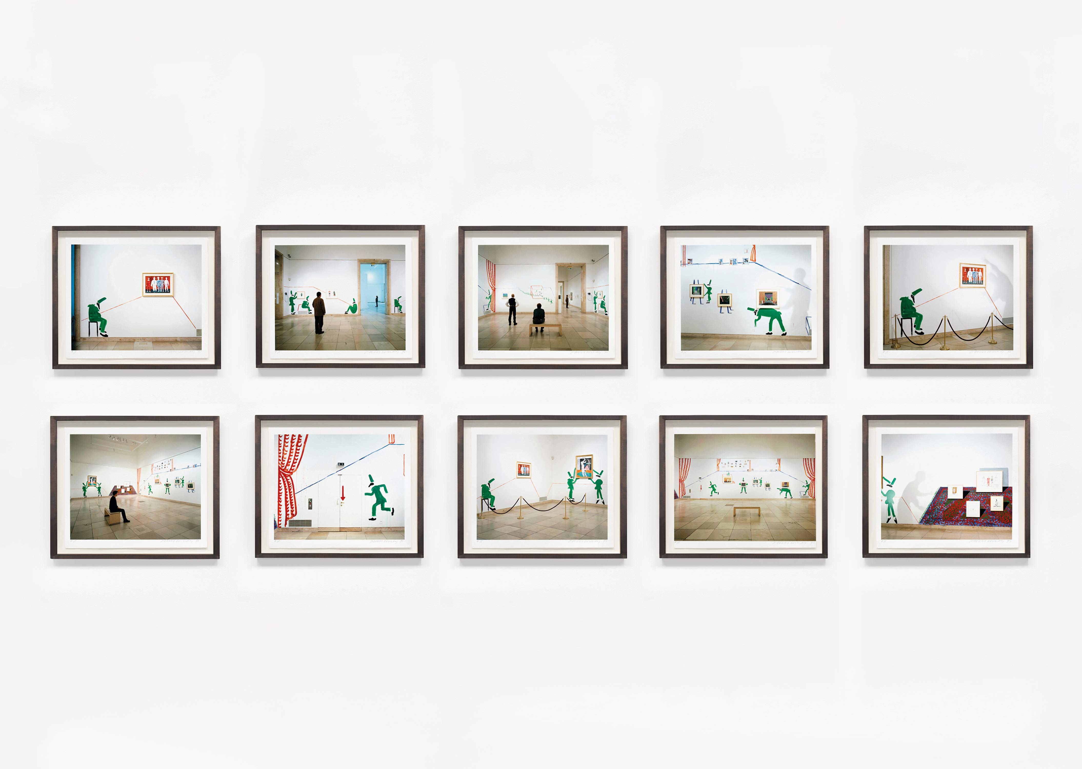 Cette exposition d’œuvres multiples met en lumière la variété des techniques d’impressions utilisées par David Hockney : gravures, lithographies, impressions numériques, photographies, photo-collage, photocopies… L’artiste a sans cesse exploré les nouvelles possibilités créatives des outils de production pour montrer ce qu’il voit : ses modèles favoris, Celia et Gregory, mais aussi ses parents, ou le fameux autoportrait de l’artiste sous ses traits d’étudiant, s’approchant, un carton à dessins sous le bras, du buste de Picasso, le maître révéré. Et parmi ces portraits, quelques fleurs, certaines dansantes, des tournesols, une « rose pour [sa] mère », et tout ce qui vaut la peine d’être immortalisé depuis sa fenêtre.