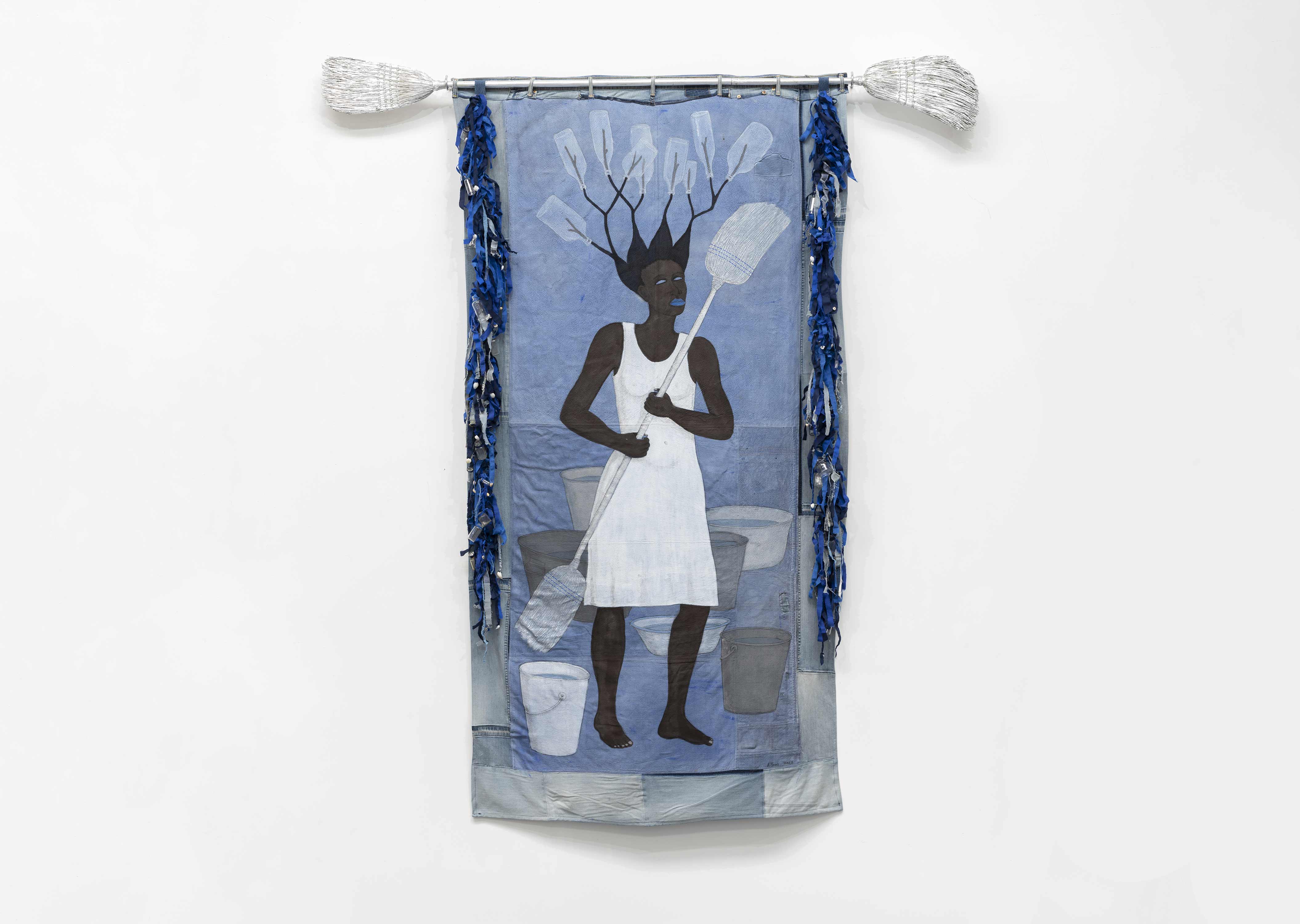 Acrylique, toile de jute, dominos, fil