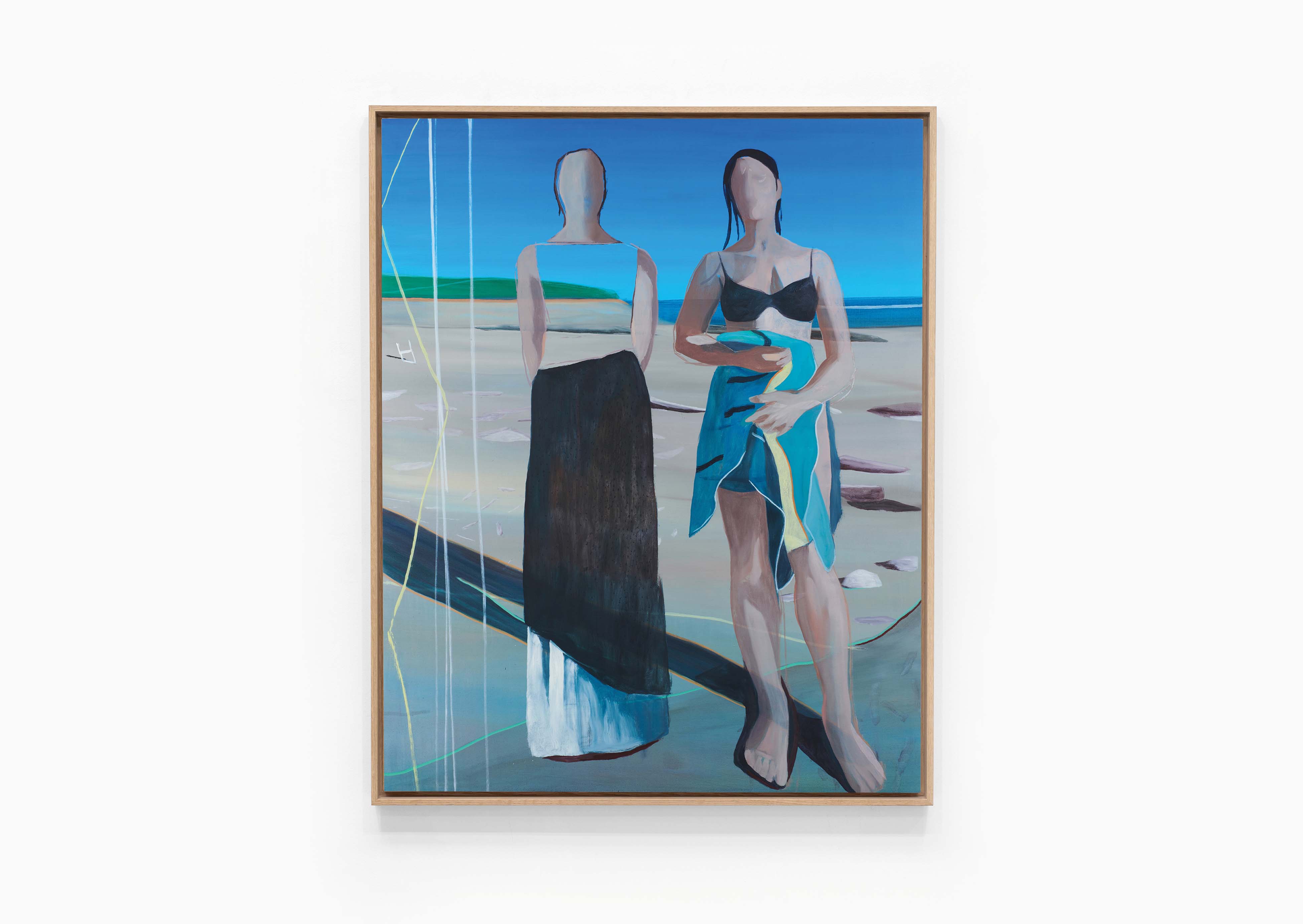Peintre majeur de la scène artistique française, Marc Desgrandchamps joue sur les notions d’opacité, de transparence et de surimpression. Si sa peinture est figurative, la perspective est souvent altérée, l’espace indéfini et des anomalies surgissent : corps morcelés, objets fantomatiques. Ses œuvres, puisant leurs références dans de nombreux univers (histoire de l’art, photographie, cinéma, littérature, musique, mais aussi photos personnelles), éprouvent les limites de la figuration. Motif récurrent chez lui, la figure féminine occupe une place centrale. Il existe des constantes fortes dans ses tableaux, comme certains sites ou l’omniprésence du ciel bleu.