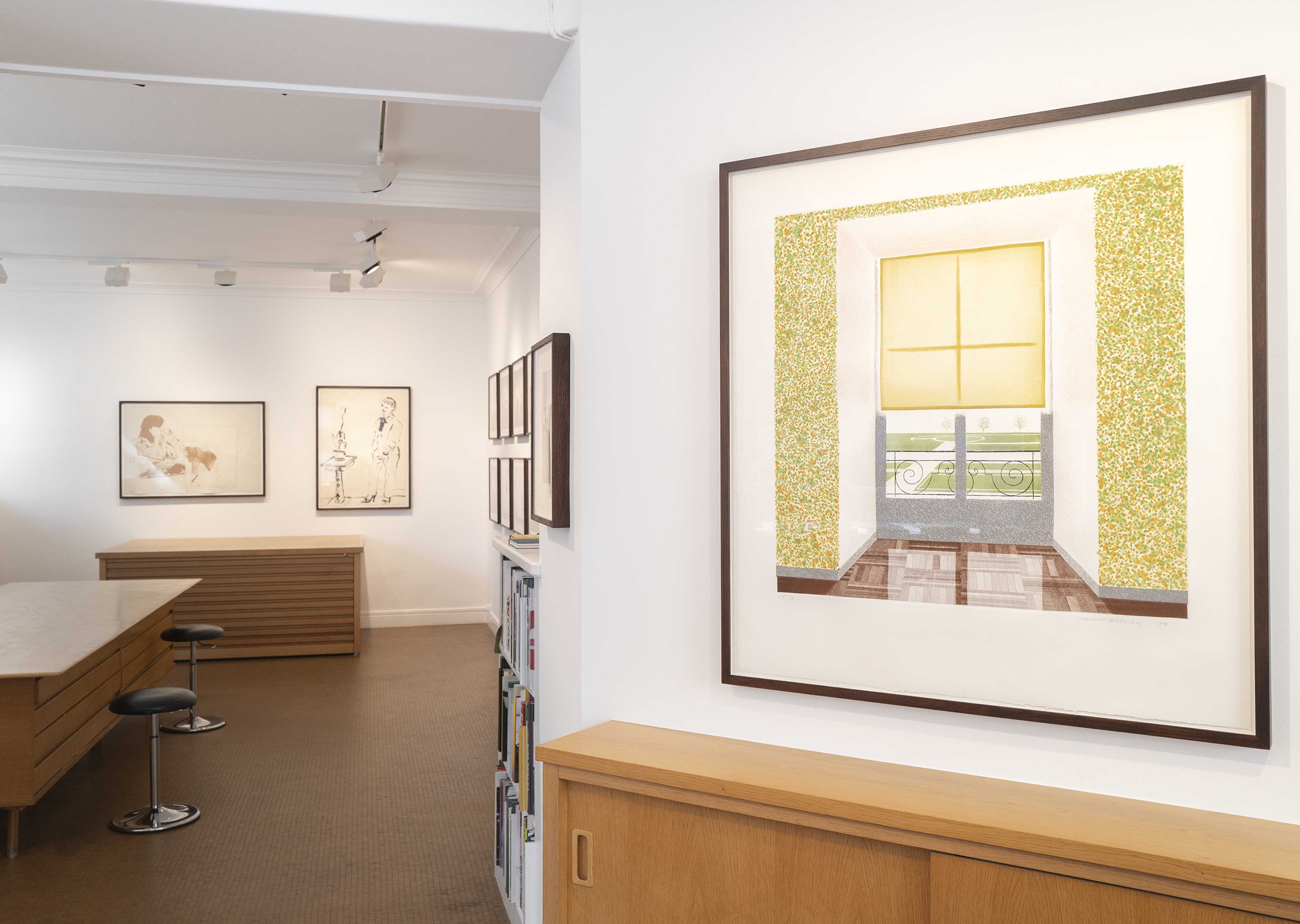 Cette exposition d’œuvres multiples met en lumière la variété des techniques d’impressions utilisées par David Hockney : gravures, lithographies, impressions numériques, photographies, photo-collage, photocopies… L’artiste a sans cesse exploré les nouvelles possibilités créatives des outils de production pour montrer ce qu’il voit : ses modèles favoris, Celia et Gregory, mais aussi ses parents, ou le fameux autoportrait de l’artiste sous ses traits d’étudiant, s’approchant, un carton à dessins sous le bras, du buste de Picasso, le maître révéré. Et parmi ces portraits, quelques fleurs, certaines dansantes, des tournesols, une « rose pour [sa] mère », et tout ce qui vaut la peine d’être immortalisé depuis sa fenêtre.