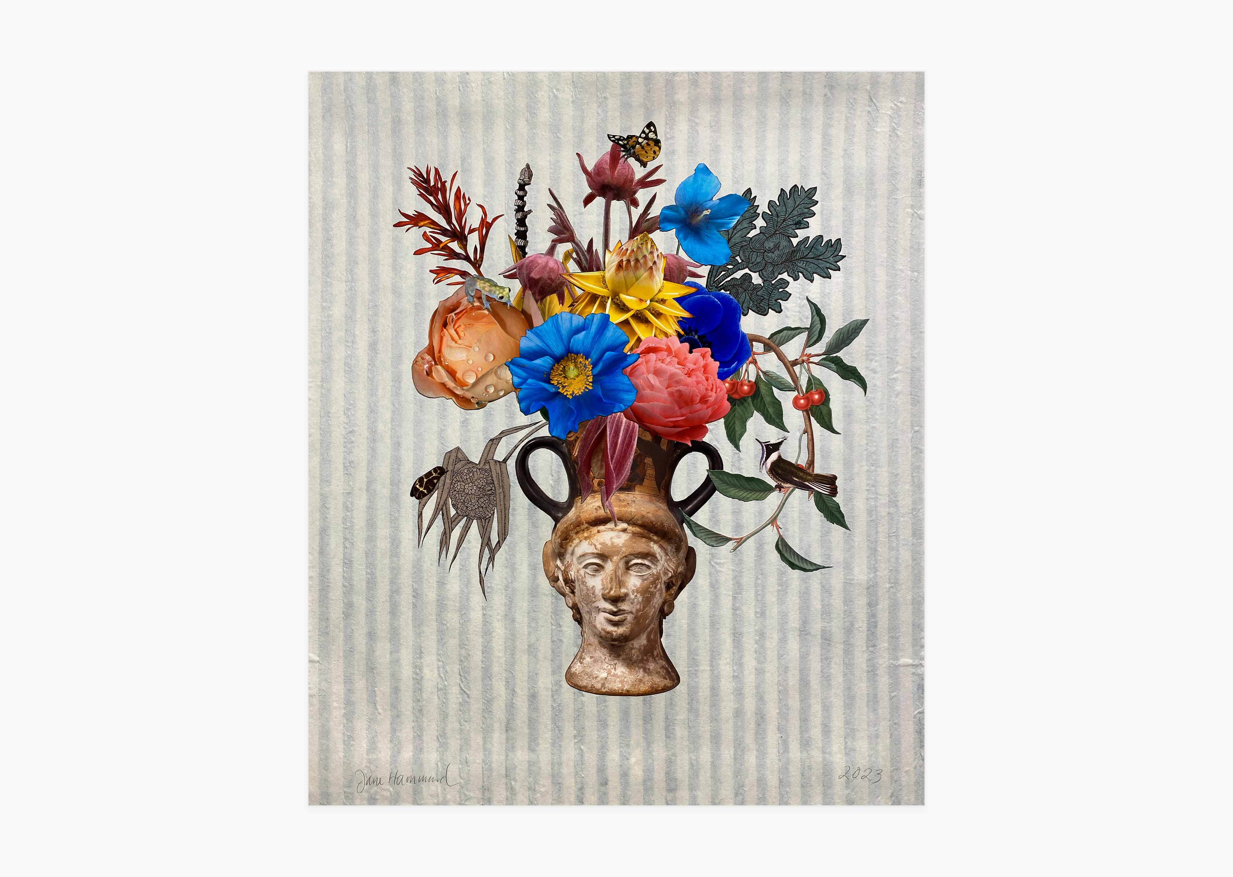 Collage botanique, technique mixte